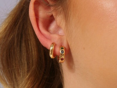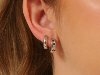 Kit brinco argolinha com pedras coloridas e argolinha lisa banhado em ouro branco