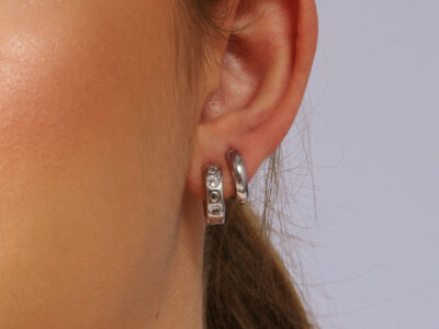 Kit brinco argolinha com pedras redondas cristal e argolinha lisa banhado em ouro branco