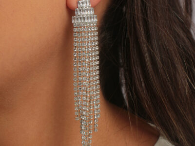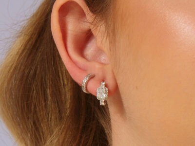 Kit argolinha com pedra retangular cristal e argolinha cravejada banhada em ouro branco