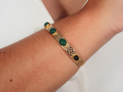 Bracelete texturizado com pedras ovais verde esmeralda banhado em ouro 18k