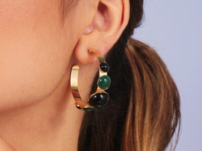 A argola com pedras preta e verde banhada em ouro 18k...27nov