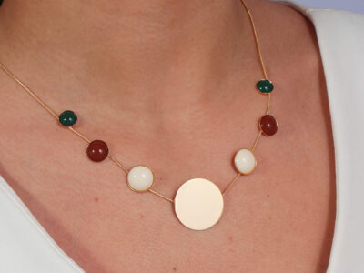 Colar circulos com pedras off-white marrom e verde banhado em ouro 18k