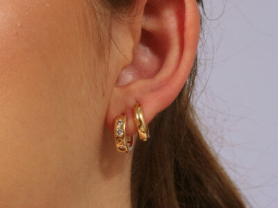 Kit brinco argolinha com pedras coloridas e argolinha lisa banhado em ouro 18k