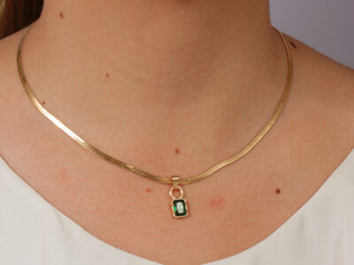 Colar fita com pingente retangular verde esmeralda banhado em ouro 18k