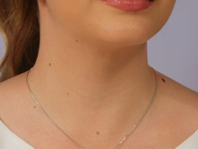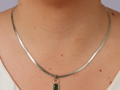 Colar fita com pingente retangular verde esmeralda banhado em ouro branco