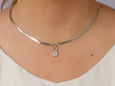 Colar fita com pingente retangular cristal banhado em ouro branco