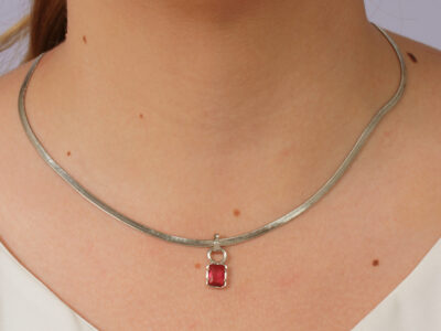 Colar fita com pingente retangular rubi banhado em ouro branco