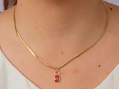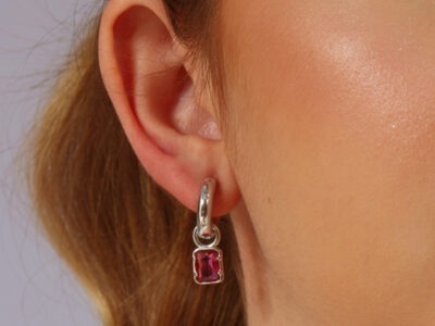 Argolinha média com pingente retangular rubi banhado em ouro branco