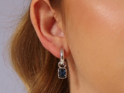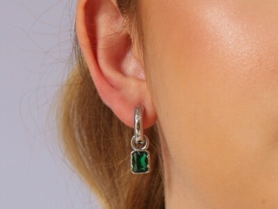 Argolinha média com pingente retangular verde esmeralda banhado em ouro branco