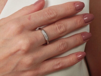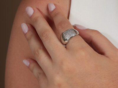 Anel com relevo de pavê cravejado banhado em ouro branco