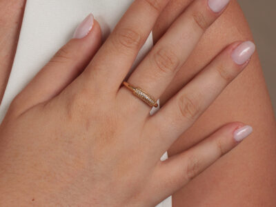 Anel com relevo de fileiras cravejada banhado em ouro 18k