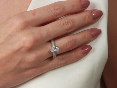 Anel cravejado com zircônia gota cristal banhado em ouro branco