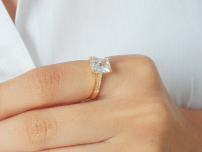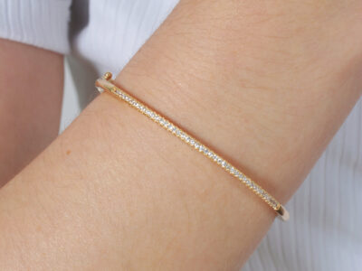Bracelete rígido com fileira de microzircônias cravejada banhado em ouro 18k