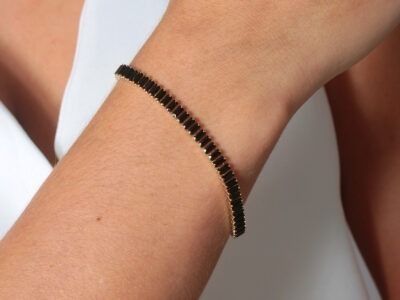 Pulseira riviera baguete zircônia ônix banhado em ouro 18k
