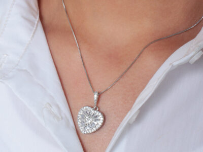 Colar com pingente de coração cravejado de zircônias banhado em ouro branco