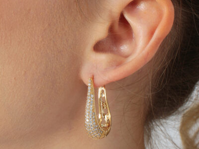 Brinco argola gota alongada cravejada banhada em ouro 18k