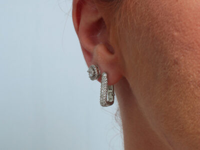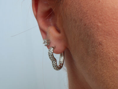 Kit de brincos argolinha retangular cravejada com segundo furo quadradinho cravejado banhado em ouro branco