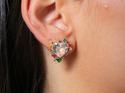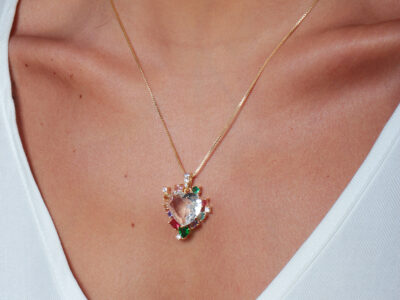 Colar de pedra coração cristal e zircônias coloridas banho em ouro 18k