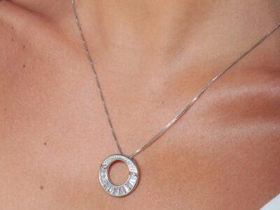 Colar com Pingente Circulo luxo com pedras de zircônia banhado em ouro branco