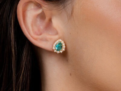 Brinco gota luxo com pedra cor turmalina cravejado com zircônia