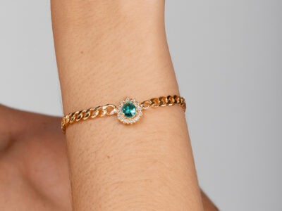 Pulseira luxo com pedra gota cor turmalina cravejada banhada em ouro 18k