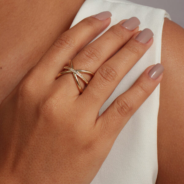Anel cruzado com fileira cravejada banhado em ouro 18k