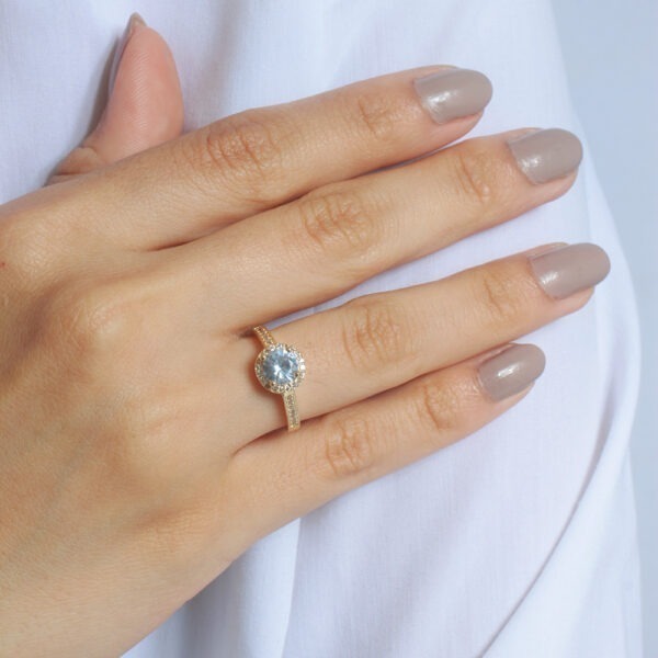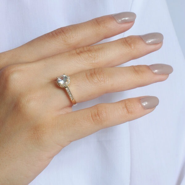 Anel solitário zircônia redonda cristal detalhes cravejado banhado em ouro 18k