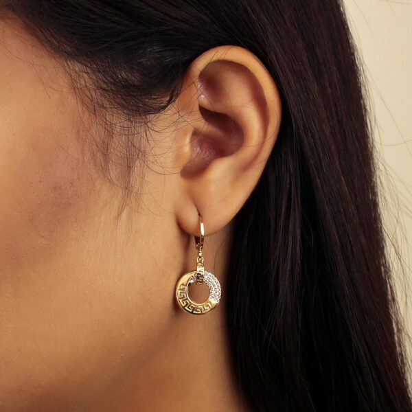 Brinco zircônia de coração e retangular adorno cravejado banhado em ouro 18k