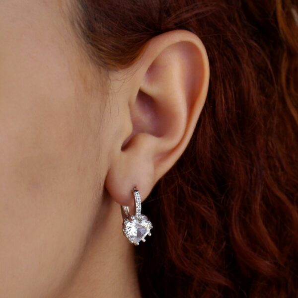 Brinco de zircônia cristal retangular com detalhes banhado em ouro branco