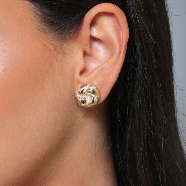 Brinco Circular estilizado fita trançada cravejado de zircônias banhado em ouro 18k