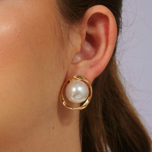 Brinco círculo orgânico com pérola banhado em ouro 18k