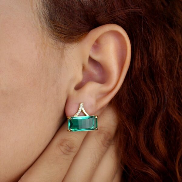Brinco com pedra verde e zircônias banhado em ouro 18k