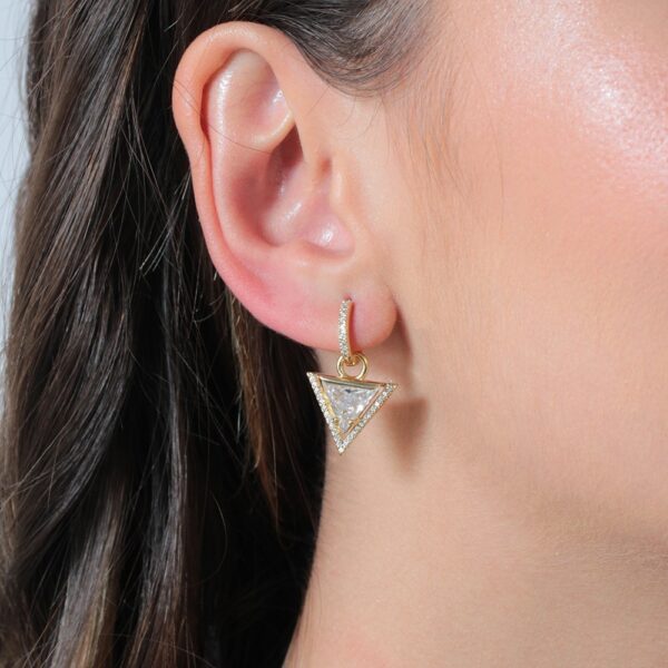 Brinco de argola com pingente tringulo cravejado de zircônias banhado em ouro 18k