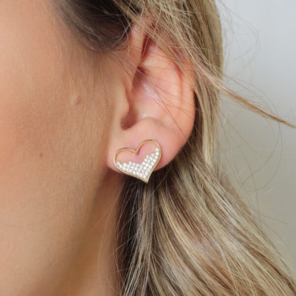 Brinco de coração com detalhe de zircônias cravejadas banhado em ouro 18k