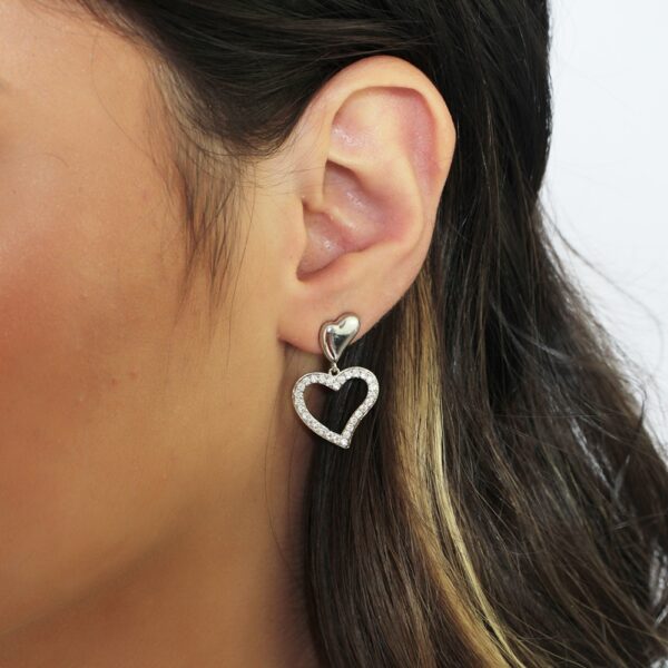 Brinco de coração delicado e cravejado com zircônias cristal banhado em ouro branco