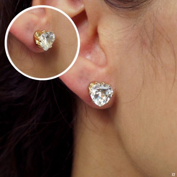 Brinco de coração semijoia zircônia cristal folheado a ouro 18k