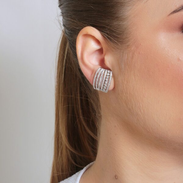 Brinco design fivela estilizada banhado em ouro branco