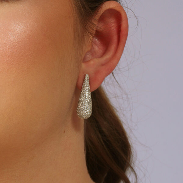 Brinco gota alongada toda cravejada banhada em ouro branco