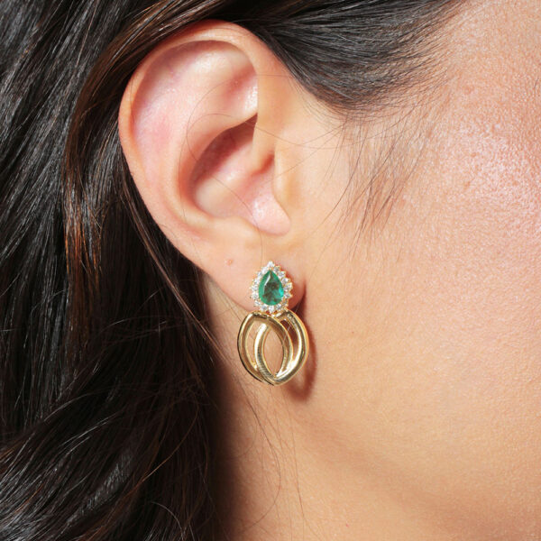 Brinco pétala com zircônia turmalina banhada em ouro 18k