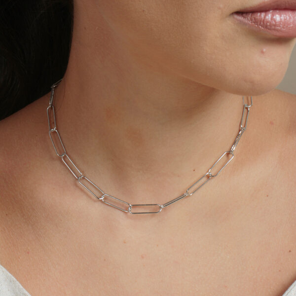 Colar com pingente comprido com pontos de luz redondo e de coração banhado em ouro branco