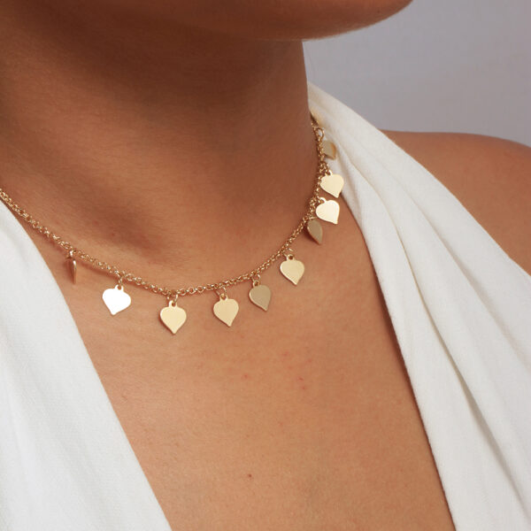 Choker medalhinha de corações lisos banhado em ouro 18k