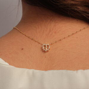 Colar com pingente resina pérola adorno cravejado banhado em ouro 18k
