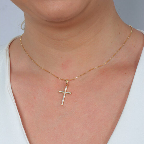 Colar com pingente cruz cravejado banhado em ouro 18k