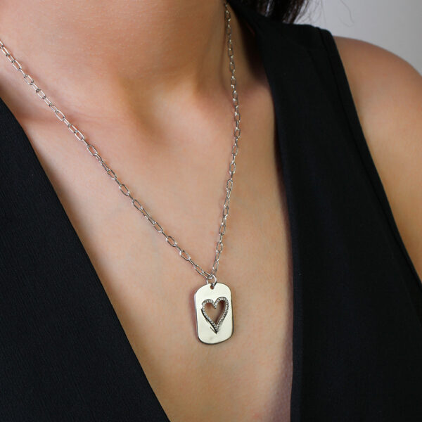 Colar com pingente plaquinha com coração vazado