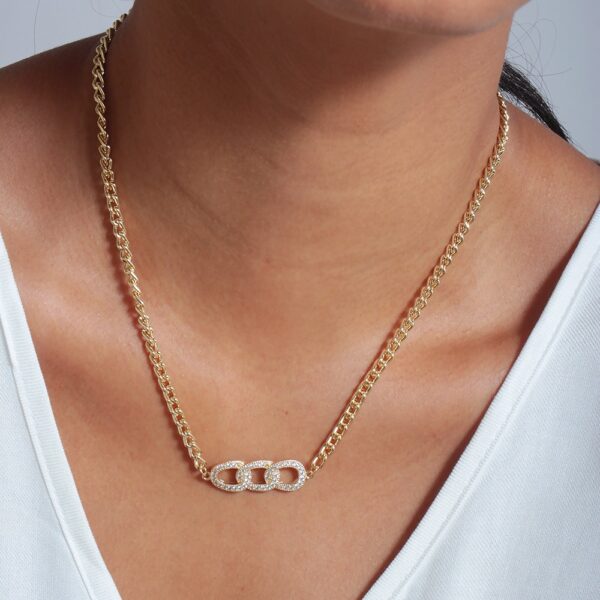 Colar com pingente tipo corrente cravejado de zircônias banhado em ouro 18k