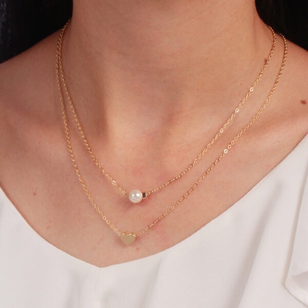 Colar duplo com pérola e coração delicado banhado em ouro 18k