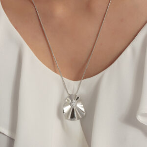 Colar elos redondos com pingente fecho boia banhado em ouro branco