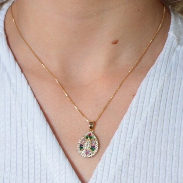 Colar gota com zircônias coloridas cravejadas banhado em ouro 18k