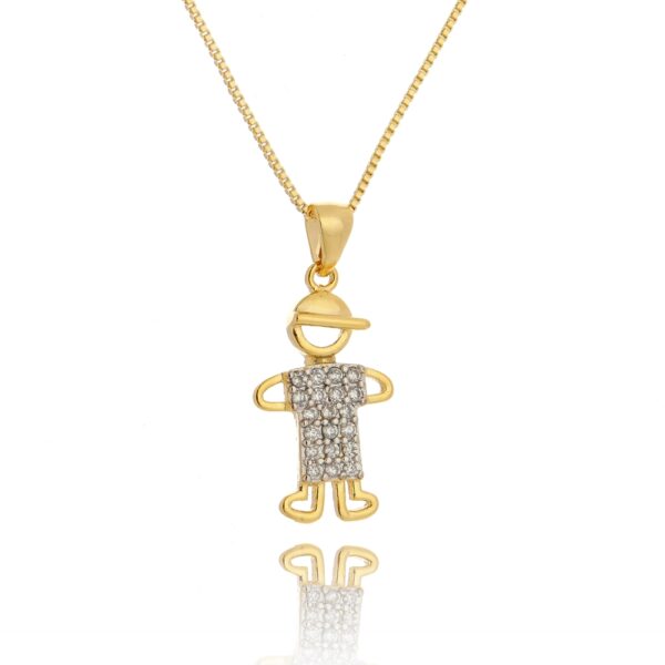 Colar Menino cravejado com zircônias folheado a ouro