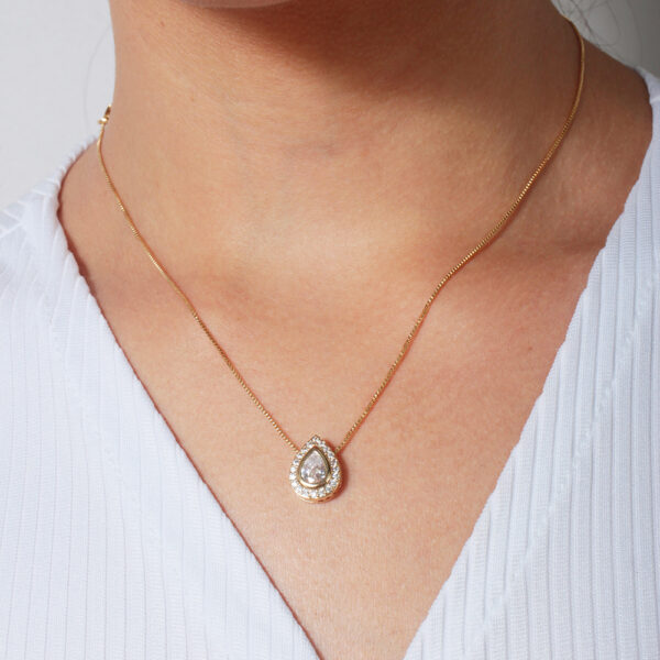 Conjunto colar e brinco gota com zircônia cristal cravejado